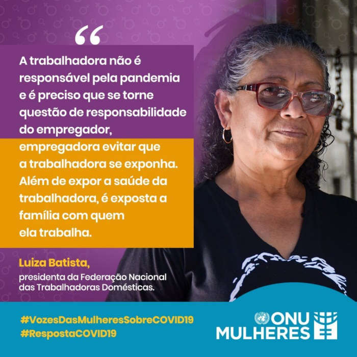 Também dirigente da Fenatrad Quiteria Santos, que também é dirigente do Sindicato das Domésticas de Sergipe, lembra que ações coletivas, como greve, também são inviáveis para as trabalhadoras domésticas. “Nós não podemos fazer greve. Como a gente vai se reunir para fazer greve? Vai chegar nos condomínios e fechar? Outras categorias podem. Chega numa fábrica, coloca um cadeado e ninguém entra. Mas trabalho doméstico é difícil até pra isso. Nosso trabalho é um trabalho de formiguinha”, afirma durante a live realizada pela CUT-DF a trabalhadora doméstica que ainda integra a direção da CUT e compõe a Marcha Mundial das Mulheres.