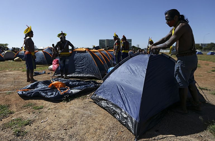 Indígenas de todo o país começaram a chegar em Brasília para reivindicar a derrubada da tese no Supremo Tribunal Federal (STF), que deve ser julgada na quarta-feira, 7 de junho. Cerca de dois mil indígenas devem ficar acampados na Praça da Cidadania, próximo ao Teatro Nacional, para acompanhar o julgamento.