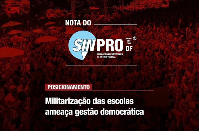 Em nota, o sindicato dos Professores no DF (Sinpro-DF) denunciou que a militarização das escolas – chamada de gestão compartilhada cívico-militar, não tem sido benéfica para a comunidade escolar. Pelo contrário, além de apresentar resultados negativos, a presença de militares nas instituições de ensino ameaça a gestão democrática ─ modelo que se centra nos interesses e na participação ativa da coletividade, e tem como um de seus mecanismos a eleição (e não indicação) da equipe gestora.
